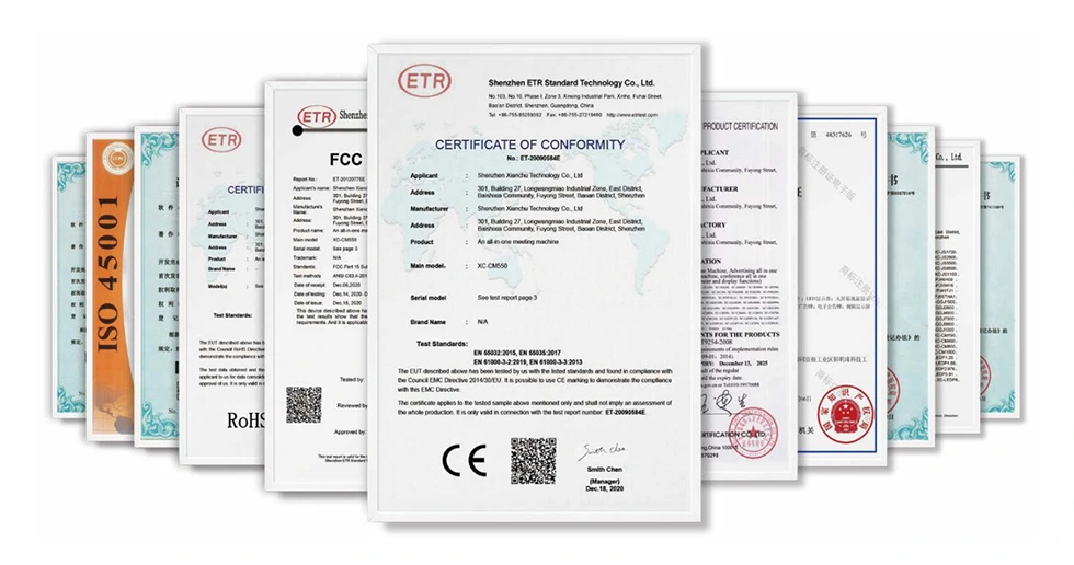 Flere strenge professionelle test er blevet udført for at sikre, at produktkvaliteten er stabil og pålidelig. I øjeblikket har fabrikken bestået ISO9001 kvalitetsstyringssystemcertificering, energibesparende certificering, 3C, CE, ET, FCC, ROHS og så videre.